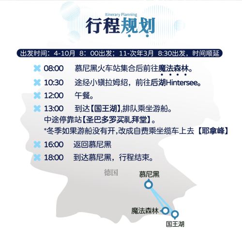 2. El Lago del Rey cerrará sus barcos el 24 de diciembre. Para esta fecha, el tour se modificará para tomar el teleférico hasta la montaña Jenner y contemplar el Lago del Rey desde arriba. Si deseas reservar para esta fecha, por favor contacta con el servicio de atención al cliente para cambiar el tipo de entrada y el precio.
