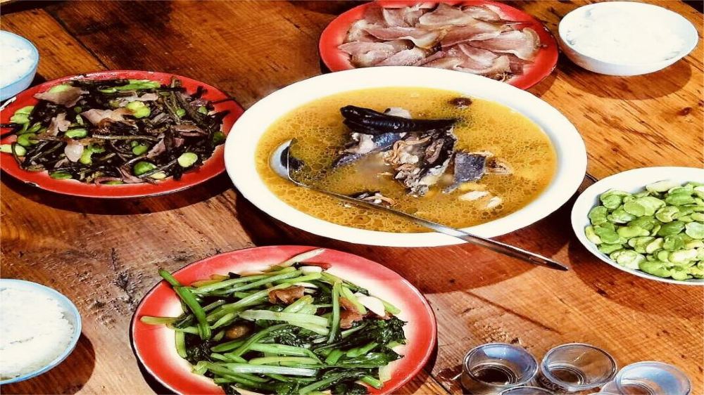 ②Después de llegar al pueblo, primero experimentaremos un almuerzo especial en la casa de una familia local y probaremos el jamón de todo el país.