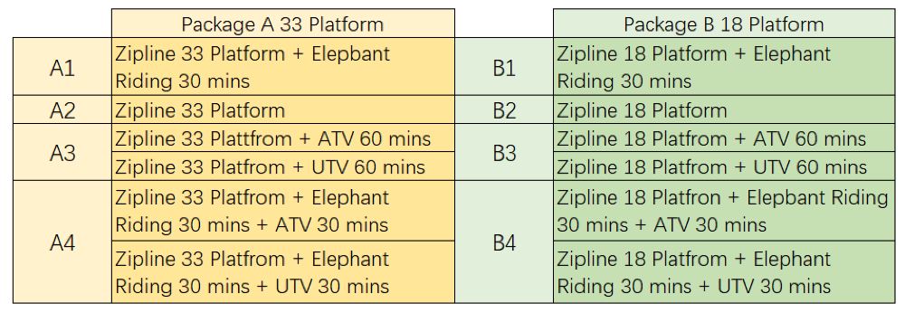 Requisitos de edad y peso: para los paquetes Zipline, los niños deben tener 4 años o más y pesar al menos 20 kg. Se deben cumplir ambas condiciones; de lo contrario, el niño no puede participar.