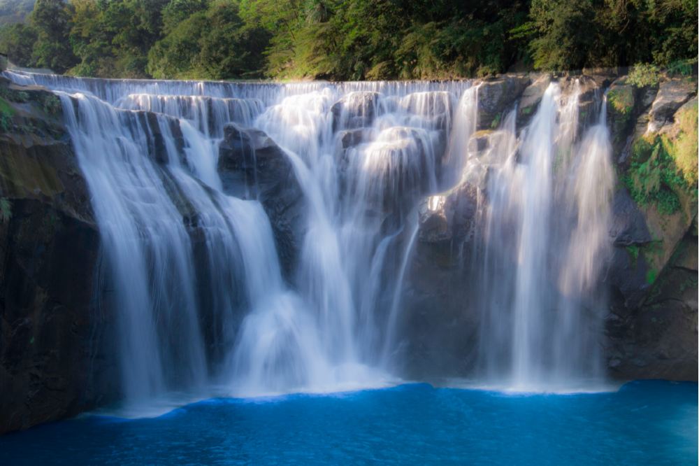▲ El Parque de la Cascada Shifen, conocido como las "Cataratas del Niágara de Taiwán", se caracteriza por sus capas inclinadas inversas que crean un contraste llamativo entre el flujo de agua y las formaciones rocosas.