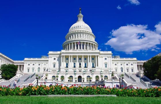 ▲ Símbolo del gobierno del pueblo, por el pueblo y para el pueblo en Estados Unidos. El Capitolio fue colocado su primera piedra el 18 de septiembre de 1793 por el presidente George Washington D.C. y entró en uso en 1800. Durante la Segunda Guerra de Independencia de Estados Unidos en 1814, fue incendiado por los británicos, destruyendo parte del edificio. Posteriormente se añadieron las salas de reuniones del Senado y la Cámara de Representantes, la cúpula y la rotonda, y se realizaron múltiples remodelaciones y ampliaciones. El Capitolio de los Estados Unidos es la sede del poder legislativo. El Senado se ubica en el ala norte del edificio y la Cámara de Representantes en el ala sur.