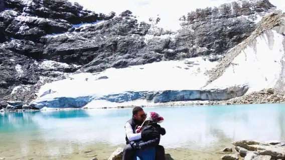 Disfrute de una vista espectacular de la Laguna Esmeralda y el nevado Charquini.