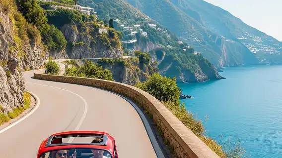 Costa Amalfitana en un Fiat 500 o 600 clásico