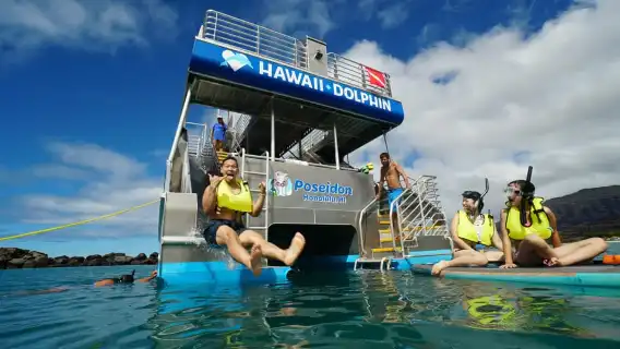 Oahu: Nado con delfines, tour de snorkel con tortugas y tobogán acuático
