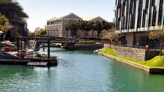 Explora el canal que se extiende hasta el CTICC en un bote a pedales.