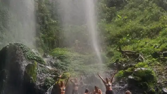 Siente el fresco rocío del agua mientras te encuentras en la base de la cascada.
