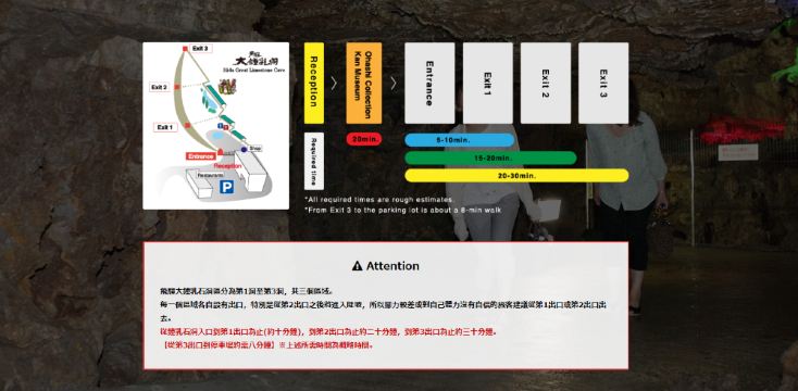 Precio de la entrada: Adultos 1100 yenes, niños 550 yenes (válido para la Cueva de Hida Great Limestone y el Museo de Colección de Puentes).